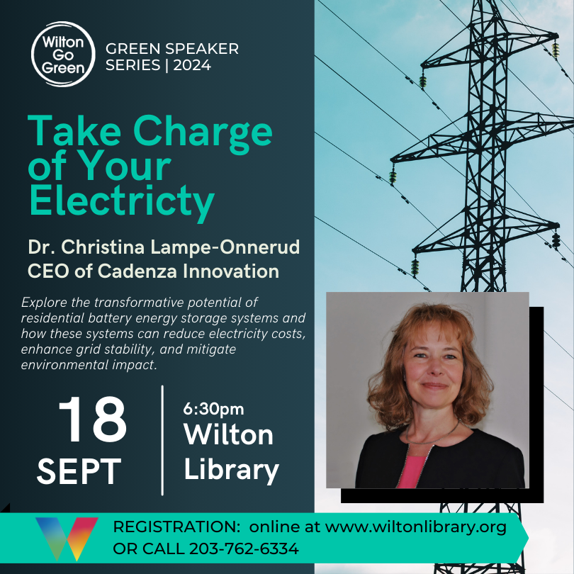 Dr. Christina Lampe-Onnerud, CEO of Cadenza Innovation, will explore the transformative potential of residential battery energy storage systems. She will delve into how these systems can revolutionize household energy management by reducing electricity costs, enhancing grid stability, and mitigating environmental impact. Drawing on her extensive expertise, Dr. Lampe-Onnerud will highlight the financial benefits for homeowners, the increased resilience and efficiency of the electrical grid, and the crucial role of sustainable energy storage in addressing climate change. Join us at the library for an inspiring discussion on harnessing cutting-edge technology to shape a greener, more economically sound future.